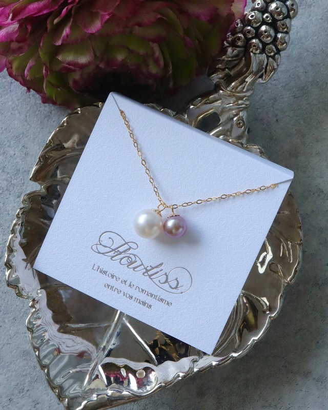 【通常販売...4月末発送】 販売開始:3月27日(土)21:00- ▼商品動画 https://vimeo.com/1125722952 まるで果実のように つややかで美しい二粒の淡水真珠をネックレスに。 名前はフランス語で「果実」の意味を持つ Fruit(フリュイ)と名付けました。 ぶどうやカシス、いちじく、ザクロなどの 果実のように美味しそうで可愛らしいフォルム。 14kgfのパールキャップは、 さりげないボタニカル(お花)モチーフをあしらっています。 ピンクパープルの真珠は ピンク・パープル・シャンパンベージュ・シルバーが混ざったような絶妙な美しいお色味です。 そして、なんとこちらは天然カラー。Flowliss.で非常に人気の高い色味の真珠となっております。 ペアで合わせたホワイトカラーの淡水真珠は 9.5㎜の大玉のため ころんっと存在感があります。 お肌の上からでも ダークトーンのトップスの上からでも 美しい照りツヤが存在感を発揮してくれますよ♡ 美しい色味のピンクパープル そして大玉の白真珠を贅沢にもちいた とっておきの果実necklace。 コーディネートのお役にたてますように。 【ピンクの色味について】 ▼下記の2色よりお好みをご選択ください▼ ・ノーマル ・淡め ※天然カラーなので二つとして「全く同じ色味」のものはございません。 かならずお写真で濃淡や色味の違いをご確認いただき、この程度の個体差があることをご理解くださいませ。 【真珠について】 真珠には小さなえくぼや僅かなスレがある場合がございます。 艶照りのよい真珠ですので「1m目元から離すとほとんど判別ができない」程度の 0.5㎜以下の白く小さなえくぼは光で飛ぶため 普段使いには問題ないと判断して使用させていただいております。 その際は正面からは見えにくい内側に配置させていただきます。 当店の基準をご理解いただける方のみご購入くださいませ。 【長さ】 2種類の長さをご用意しております。 ショート…38-43㎝(5センチアジャスター付き) ロング…43-48㎝(5センチアジャスター付き) 地肌で身に着けることが多い方 Yネックのお洋服が多い方はショートを お洋服の上から身に着けることが多い方や ゆるっと身に着けられたい方はロングを おすすめしております✿ 【サイズ】 ピンクパープル淡水真珠…6.5㎜±0.5㎜ ホワイト淡水真珠…9.5㎜±0.5㎜ 【素材】 ・淡水パール ・14kgf(ゴールド部分はすべて14kgfです) 【発送】 4月末 ※お写真で全体の雰囲気をご確認していただくために耳飾りなども掲載しておりまが、こちらは【Fruit necklace″単品”】ページなのでご注意ください。 ※複数回別々にご購入された場合は、おまとめして発送させていただきます。 プレゼント用の方への商品が含まれる場合、個別包装させていただきますのでお知らせください。 複数回に分けて購入後に、あとからの送料おまとめは、BASEのシステム上できないためご容赦くださいませ。 ※香りを添えてお送りしております。香料が苦手な方は、遠慮なく備考欄やお問合せからお知らせくださいませ。ご購入後のご連絡でも構いませんのでお知らせください。 ※輸送中の破損や絡まり等、100%ゼロにすることができません。 初期不良が発生した場合は必ず対応させていただきますので あらかじめご理解いただけますと幸いです。 ――商品ご購入前に、必ず【shopping guide】をご一読くださいーー