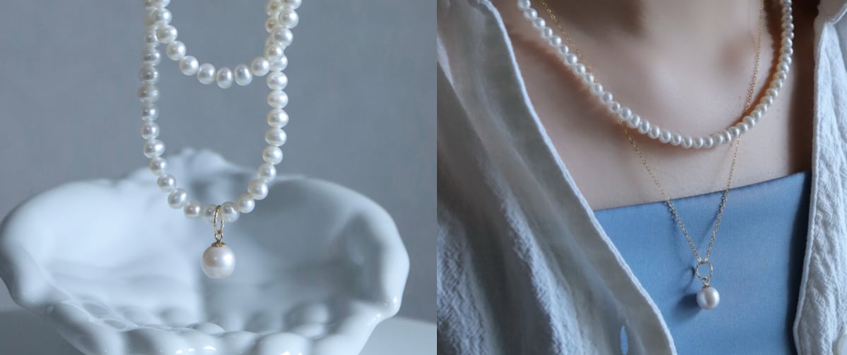照り艶の素晴らしい白真珠を 贅沢に使いフルパールのネックレスに仕立てました。 まるで絹のように美しい質感と色味、 あらゆるお洋服に溶けこんでくれるところから 「Pure」と名付けました。 冠婚葬祭のイメージの強いフルパール。 5.5㎜という絶妙な粒サイズ、滑らかな質感の真珠を選別することで、春夏秋冬の普段着にも美しくなじむようデザインしています。 真珠のグレードや色味や質感は 100あれば100通り。 一見「同じ」にみえるフルパールネックレスでも 作り手が選ぶ真珠によって クオリティも見た目も大きく変わってきます。 Flowliss初のフルパールネックレス こだわりをご一読くださいませ。 ▶照り艶 フルパールを作るにあたり 一番重視したポイントです。 シンプルだからこそごまかしがききません。 淡水真珠の中でトップクラスの艶の美しい粒を厳選しました。 顔のくすみをパーンと飛ばしてくれる艶感です°˖✧ ▶サイズ 粒の大きさは5.5㎜の中粒 「使いやすさ」を一番に考えたサイズです。 これ以上粒が大きくなると 身に着けたときにもたっと感が出やすくなり 春夏のお洋服にはちょっと合わせづらいかな、と。 せっかくのフルパール オールシーズン使っていただくことを考えて 大きすぎずの5.5㎜にしました。 春夏も使っていただくことを想定して さらっとした薄手のシャツとサテンのキャミソールと 合わせたお写真も掲載しておりますのでご参照ください。 冠婚葬祭や秋冬だけのイメージの強いフルパールも サイズによっては暑い時期にも 身に着けていただけますよ♡ ▶色味 やわらかなオフホワイト。 真珠には クリームのようなやわらかな黄みが入った白 青みがかった白 ピンクっぽい白など 真珠には様々な「白」があります。 黄みは少なめにFlowliss.ぽい色味で、 でも肌から浮きすぎないように真っ白ではなく 肌馴染みのよい絶妙な「白」をチョイスしています。 「フルパールって合わせにくそう」 そんなイメージを払拭するような みなさまのお役に立てる一本になれますように°˖✧ 【大粒真珠】 きゅるっと大きな大玉真珠 しっかりとした存在感があります。 フルパールに通して、14kgfチェーンに通して、重ね付して お楽しみくださいませ。 【オプション14kgfチェーン】 チェーン長さ40-45㎝(+4000円) チェーン長さ45-50㎝(+4500円) 重ね付けすることで 一気にモダン感がプラスされる 14kgfチェーンをオプションでご用意しています。 重ね付して… チェーン単体でチラチラと… チャームを通して… 汎用性が高く 一本あるととても便利なのでおすすめさせてください✿ 【サイズ】 長さ:40㎝~47㎝ (真珠部分は40cm、アジャスター7㎝) 淡水真珠:約5.5㎜ 一粒真珠:9.0㎜±0.5㎜ 【素材】 ・淡水真珠 ・14kgf 【発送】 4月下旬 お届けには約1ヵ月いただいております 発送までお待ちくださり誠にありがとうございます。 【注意点】 ・真珠は「普段使いには十分美しい」ことを基準に、1mほど目を近づけないと分からないような小さな白点、スレ、窪みは許容させていただいております。 ・商品画像には、他のアクセサリーも映っておりますが。こちらは「ネックレス単品ページ」のためお間違いのないようご注意くださいませ。 ~Shopping Guideを必ずご一読くださいませ~