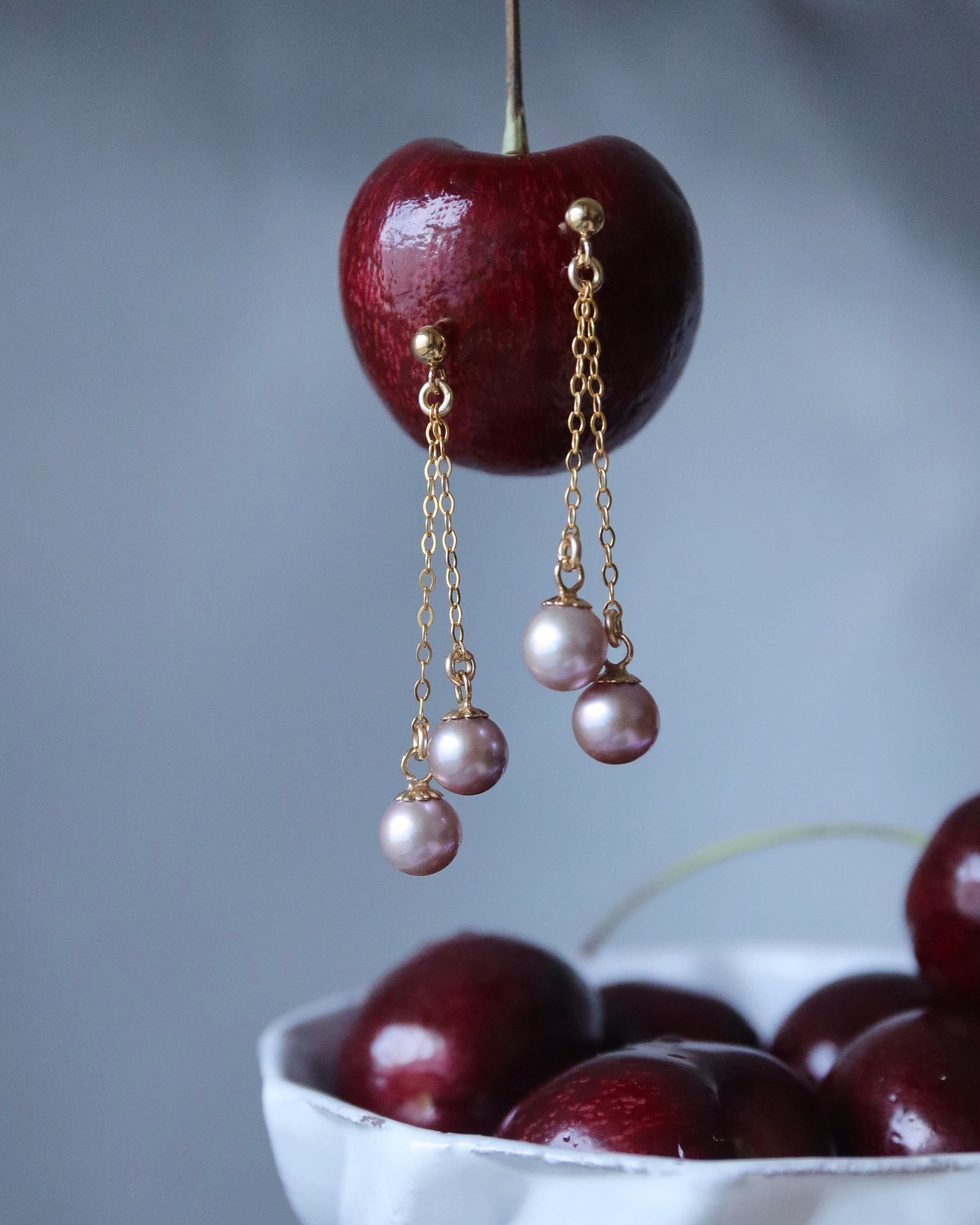【先行販売...3月末発送】 まるで木の実のように可愛らしく 可憐なピンクパープル真珠を 春のチェリーに見立てた 耳飾りをお作りしました。 ころっと真珠がチェリーのように揺れるさまが とてもキュートなお品です。 贅沢に天然カラーの真珠を4粒纏っております✿ 淡水真珠はほんのりパープルやグレージュがまざった、落ち着いたピンクとなっております。 可愛いに寄りすぎず、大人の女性も楽しんでいただける、ちょうどよい可憐さです。 真珠は天然色のため ”全く同じ色味”はございません。 ややパープルみのつよいもの グレージュがやわらかく出ているもの ピンクよりのものなど 一粒一粒に個性がございます。 いつもは左右なるべく近いカラーで組んでおりますがCherryはあえて濃淡がまざるように それぞれ異なる色味の4粒を組み合わせて お作りしました。 果物も、全くおなじ色形が存在しないように それぞれの粒たちが可愛らしく遊ぶ様子を 楽しんでいただけますと嬉しいです✿ 【金具】 ・ピアス…14kgf ・日本製無痛イヤリング…シルバー925+金メッキ 【サイズ】 ・全長…約4cm ・真珠粒…6.5mm ・重さ…片耳2g とても軽やかな耳飾りです。 【真珠につきまして】 今回、Cherryに使わせていただいた真珠たちを 葉っぱのスコップに入れて撮影したお写真を掲載しております。 この程度、それぞれの粒に濃淡の個性がございます。 4粒なるべく濃淡が可愛らしく分かれるように 作家の選別により組ませていただくことにご了承ください。 また、真珠には小さなえくぼや僅かなスレがある場合がございます。 艶照りのよい真珠ですので「1m目元から離すとほとんど判別ができない」程度の、0.5㎜以下の白く小さなえくぼは光で飛ぶため 普段使いには問題ないと判断して使用させていただいております。 その際は正面からは見えにくい内側に配置させていただきます。 当店の基準をご理解いただける方のみご購入くださいませ。 【発送】 3月下旬 (先行販売のみ3月内の発送です) ※お写真で全体の雰囲気をご確認していただくために他のアクセサリーも一緒に掲載しておりまが、こちらは【Cherry″単品”】ページなのでご注意ください。 ※複数回別々にご購入された場合は、おまとめして発送させていただきます。 プレゼント用の方への商品が含まれる場合、個別包装させていただきますのでお知らせください。 複数回に分けて購入後に、あとからの送料おまとめは、BASEのシステム上できないためご容赦くださいませ。 ※香りを添えてお送りしております。香料が苦手な方は、遠慮なく備考欄やお問合せからお知らせくださいませ。ご購入後のご連絡でも構いませんのでお知らせください。 ※輸送中の破損や絡まり等、100%ゼロにすることができません。 初期不良が発生した場合は必ず対応させていただきますので あらかじめご理解いただけますと幸いです。 ――商品ご購入前に、必ず【shopping guide】をご一読くださいーー