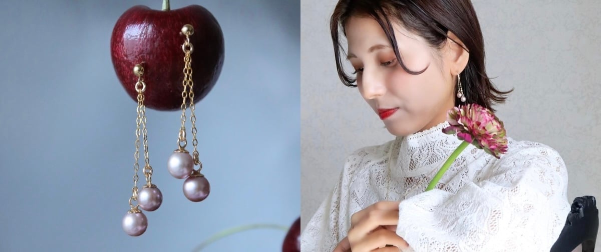 まるで木の実のように可愛らしく 可憐なピンクパープル真珠を 春のチェリーに見立てた 耳飾りをお作りしました。 ころっと真珠がチェリーのように揺れるさまが とてもキュートなお品です。 贅沢に天然カラーの真珠を4粒纏っております✿ 淡水真珠はほんのりパープルやグレージュがまざった、落ち着いたピンクとなっております。 可愛いに寄りすぎず、大人の女性も楽しんでいただける、ちょうどよい可憐さです。 真珠は天然色のため ”全く同じ色味”はございません。 ややパープルみのつよいもの グレージュがやわらかく出ているもの ピンクよりのものなど 一粒一粒に個性がございます。 いつもは左右なるべく近いカラーで組んでおりますがCherryはあえて濃淡がまざるように それぞれ異なる色味の4粒を組み合わせて お作りしました。 果物も、全くおなじ色形が存在しないように それぞれの粒たちが可愛らしく遊ぶ様子を 楽しんでいただけますと嬉しいです✿ 【金具】 ・ピアス…14kgf ・日本製無痛イヤリング…シルバー925+金メッキ ★その他、キャップ・チェーン・カンはすべて14kgf 【サイズ】 ・全長…約4cm ・真珠粒…6.5mm ・重さ…片耳2g とても軽やかな耳飾りです。 【真珠につきまして】 今回、Cherryに使わせていただいた真珠たちを 葉っぱのスコップに入れて撮影したお写真を掲載しております。 この程度、それぞれの粒に濃淡の個性がございます。 4粒なるべく濃淡が可愛らしく分かれるように 作家の選別により組ませていただくことにご了承ください。 また、真珠には小さなえくぼや僅かなスレがある場合がございます。 艶照りのよい真珠ですので「1m目元から離すとほとんど判別ができない」程度の、0.5㎜以下の白く小さなえくぼは光で飛ぶため 普段使いには問題ないと判断して使用させていただいております。 その際は正面からは見えにくい内側に配置させていただきます。 当店の基準をご理解いただける方のみご購入くださいませ。 【発送】 4月下旬 お届けには約1ヵ月いただいております 発送までお待ちくださり誠にありがとうございます。 ※お写真で全体の雰囲気をご確認していただくために他のアクセサリーも一緒に掲載しておりまが、こちらは【Cherry″単品”】ページなのでご注意ください。 ※複数回別々にご購入された場合は、おまとめして発送させていただきます。 プレゼント用の方への商品が含まれる場合、個別包装させていただきますのでお知らせください。 複数回に分けて購入後に、あとからの送料おまとめは、BASEのシステム上できないためご容赦くださいませ。 ※香りを添えてお送りしております。香料が苦手な方は、遠慮なく備考欄やお問合せからお知らせくださいませ。ご購入後のご連絡でも構いませんのでお知らせください。 ※輸送中の破損や絡まり等、100%ゼロにすることができません。 初期不良が発生した場合は必ず対応させていただきますので あらかじめご理解いただけますと幸いです。 ――商品ご購入前に、必ず【shopping guide】をご一読くださいーー