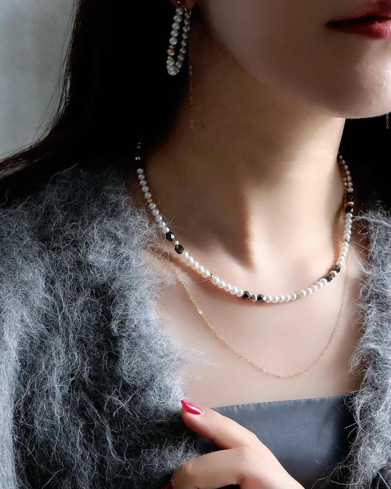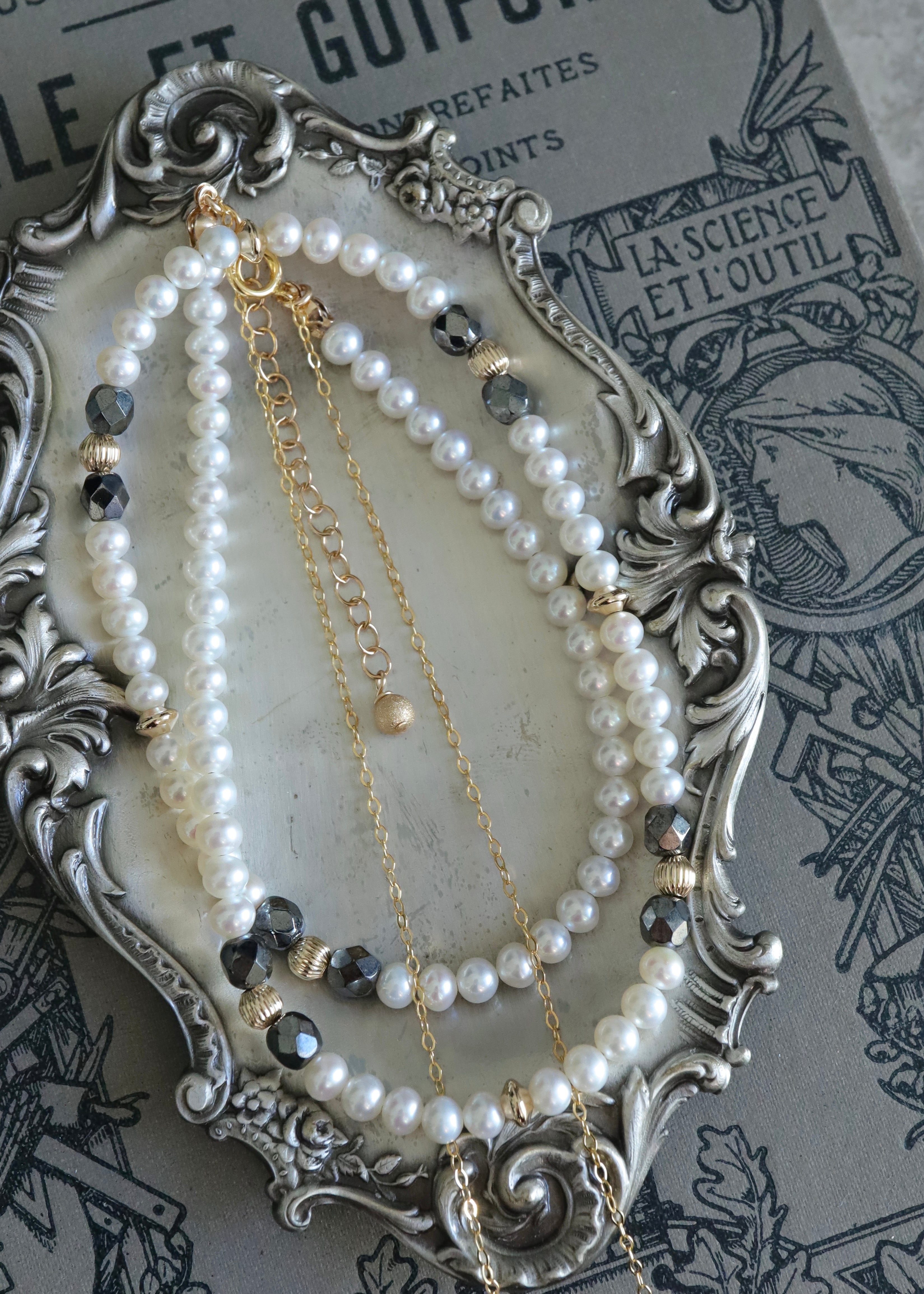 照り艶の美しい小粒真珠でお作りした贅沢なネックレス。