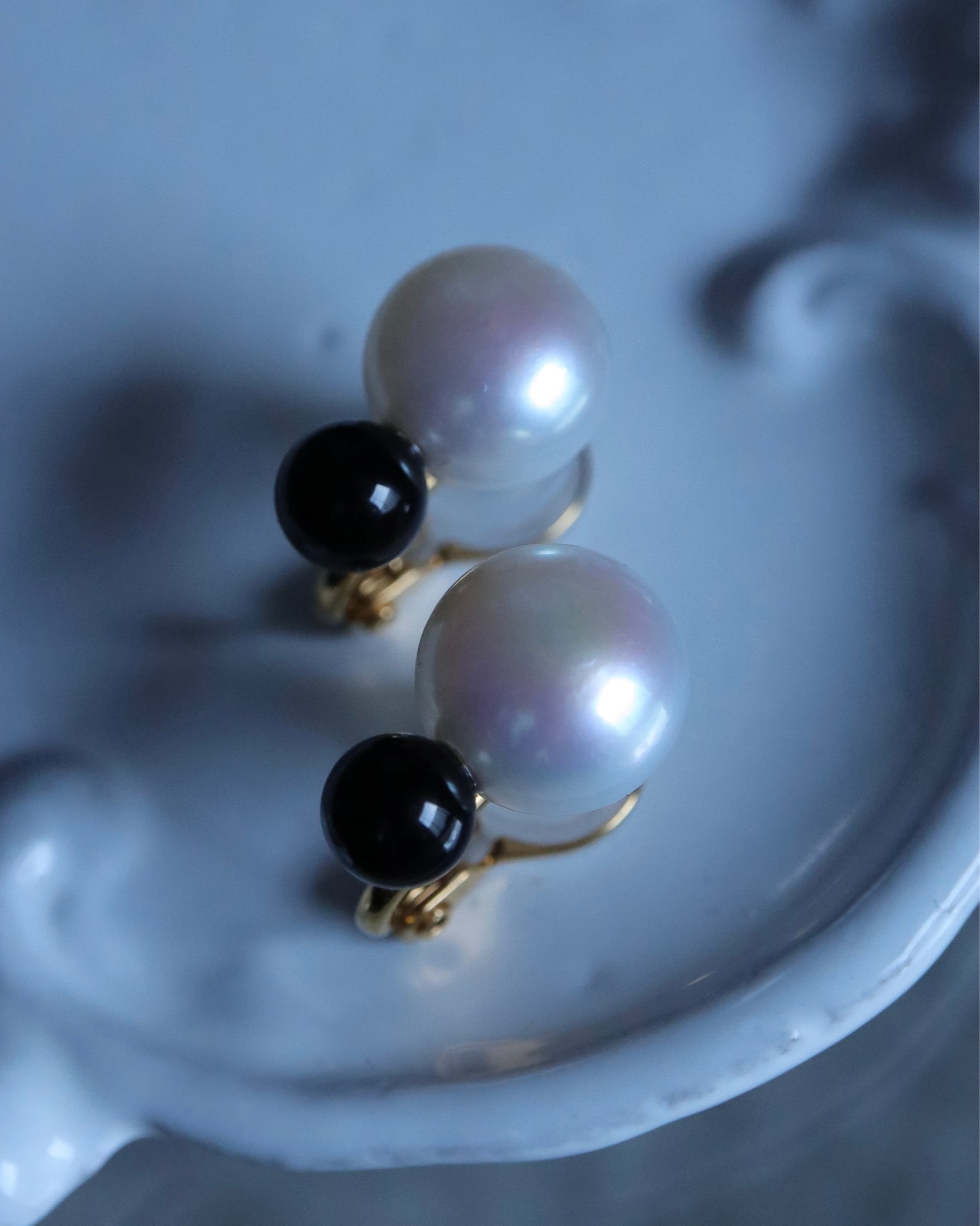 【Duo classic】大粒真珠とオニキスの耳飾り