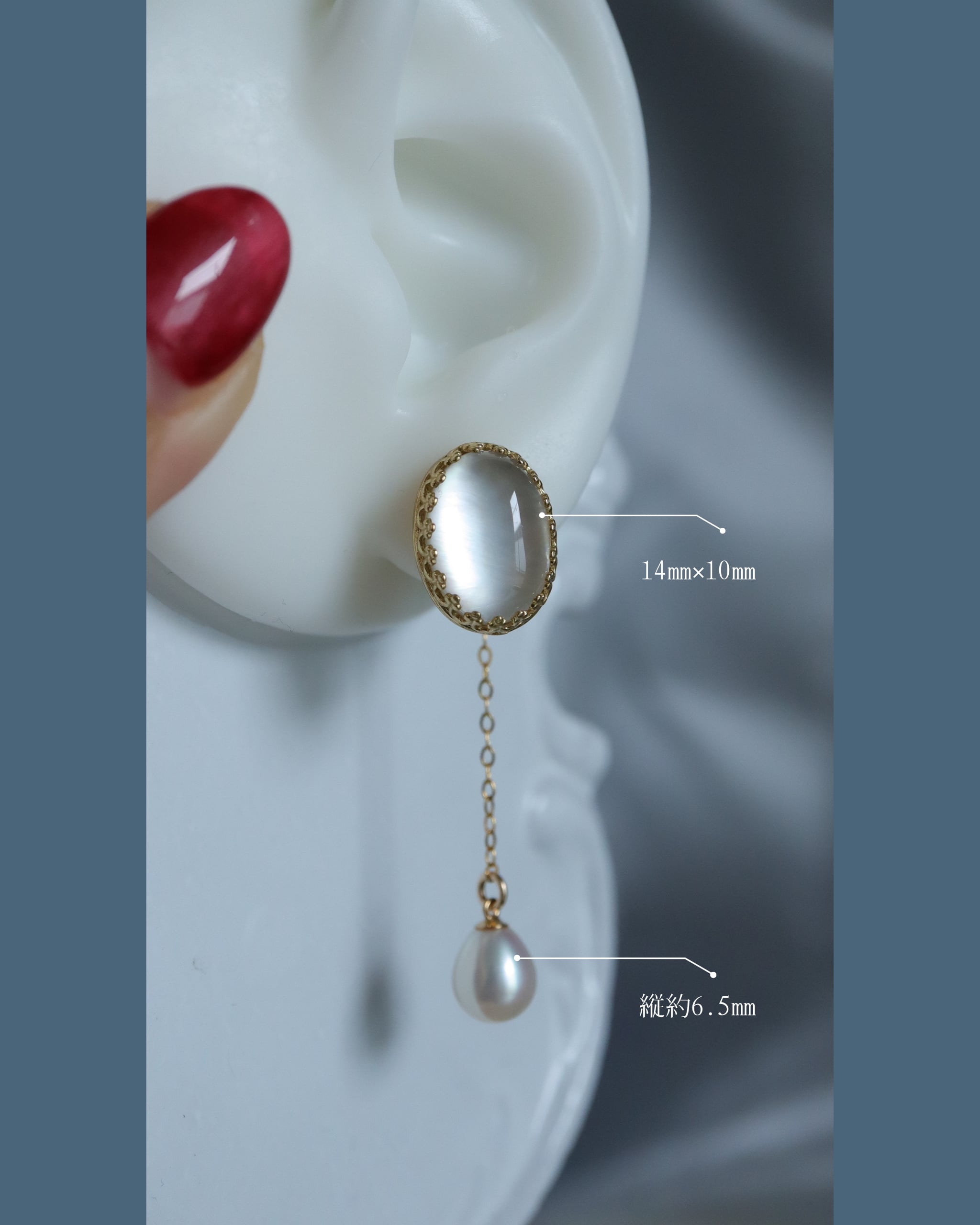 中粒でしっかりとした照りがありますので、耳元でちらちらと美しく輝いてくれます。