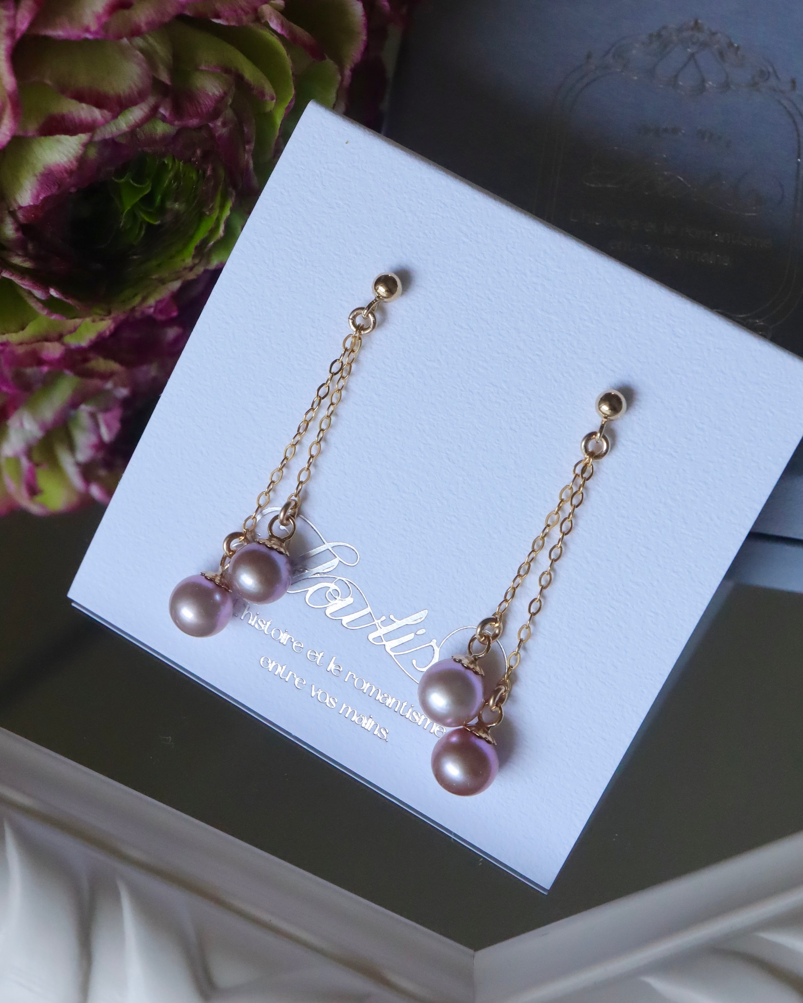 贅沢に天然カラーの真珠を4粒纏っております✿