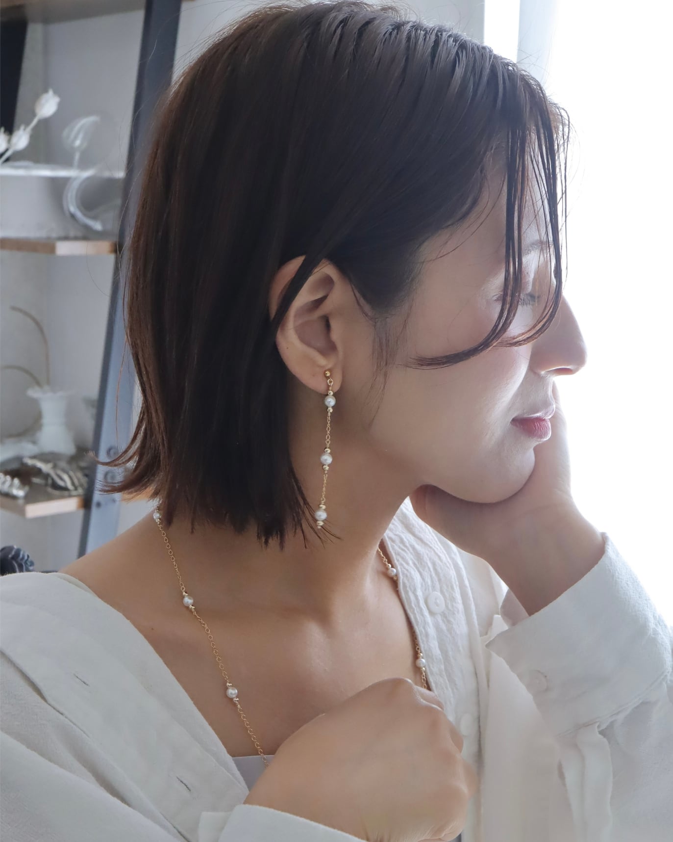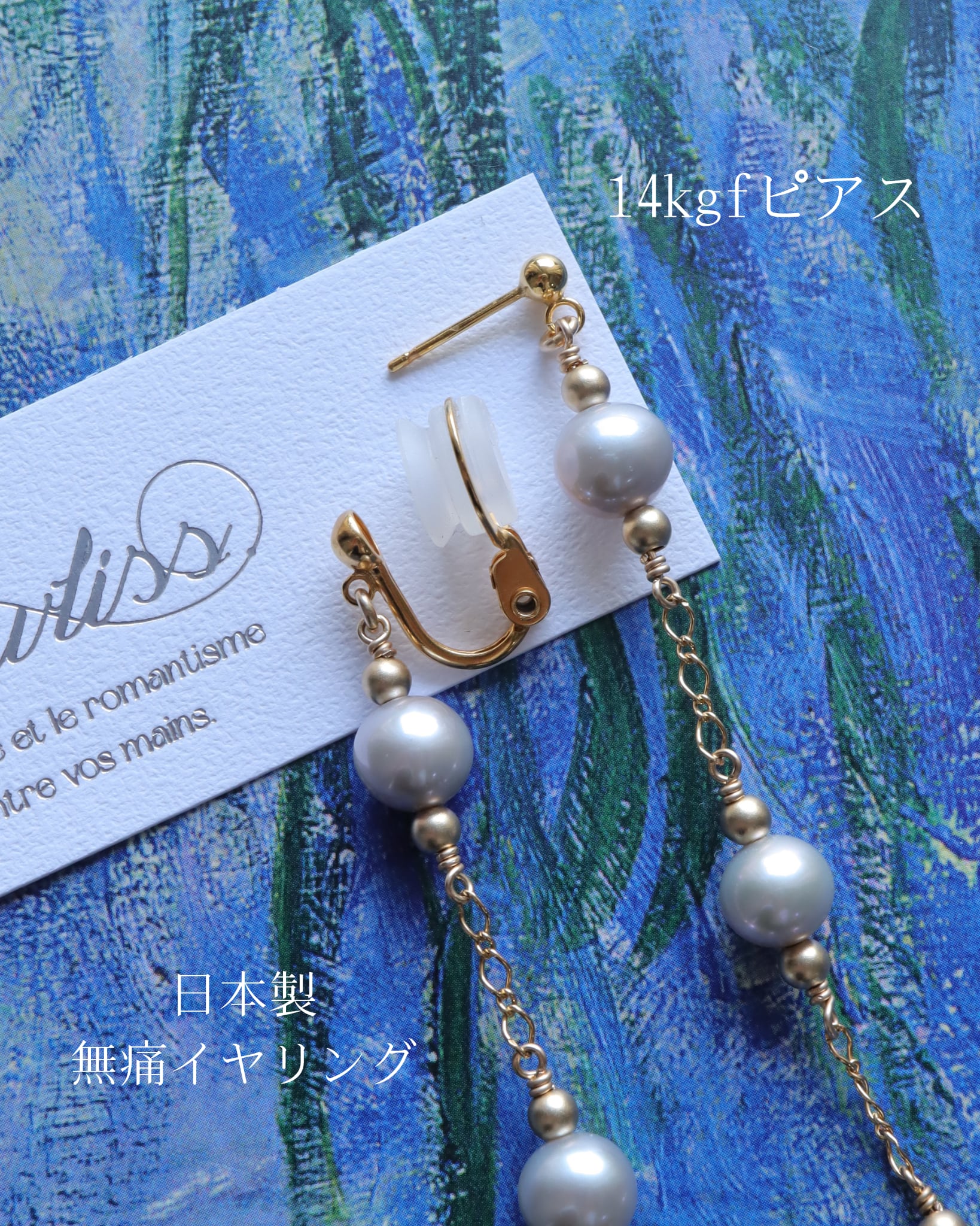 日本製無痛イヤリングとの相性がとてもよい耳飾りですので、イヤリングの痛みに悩む方に