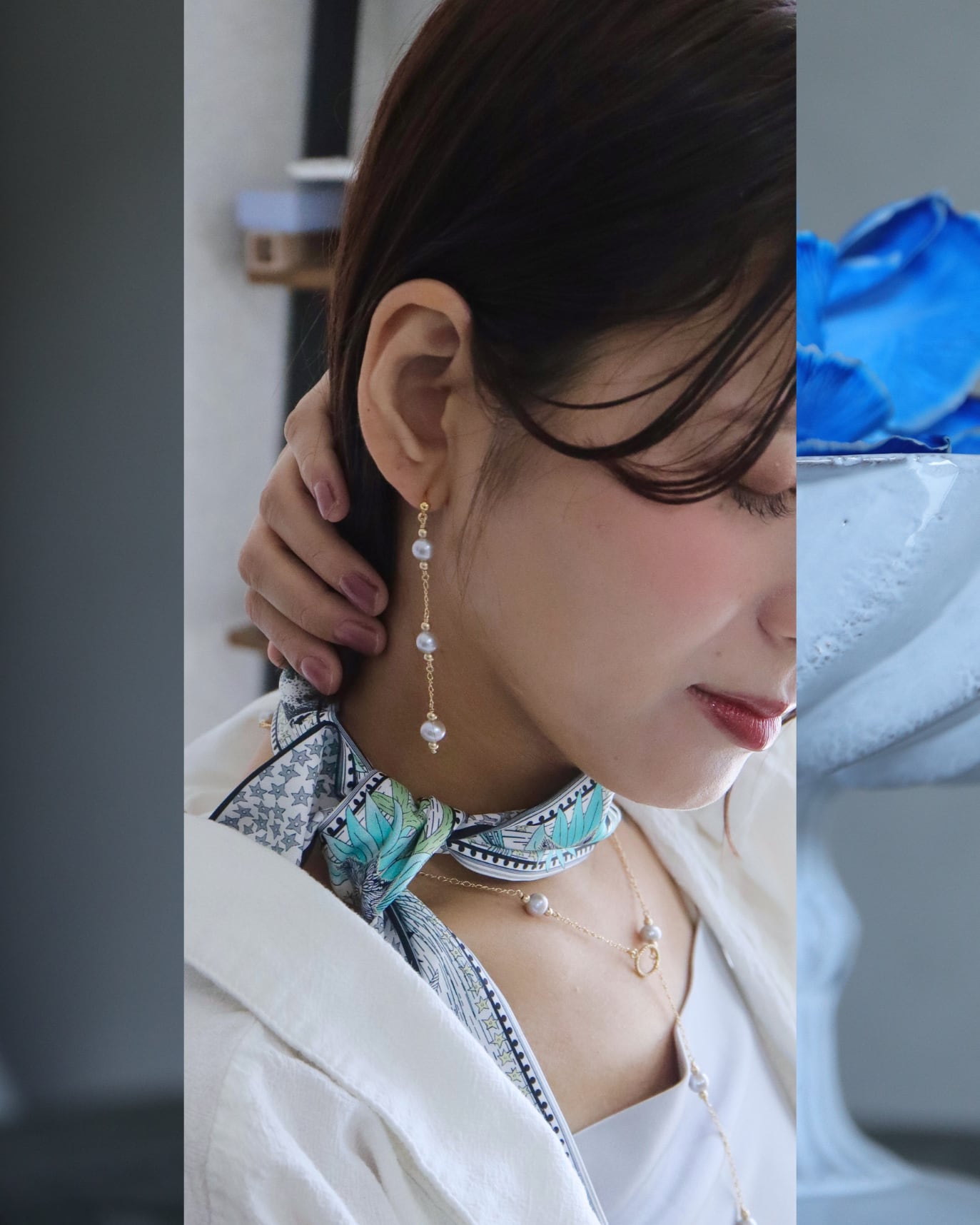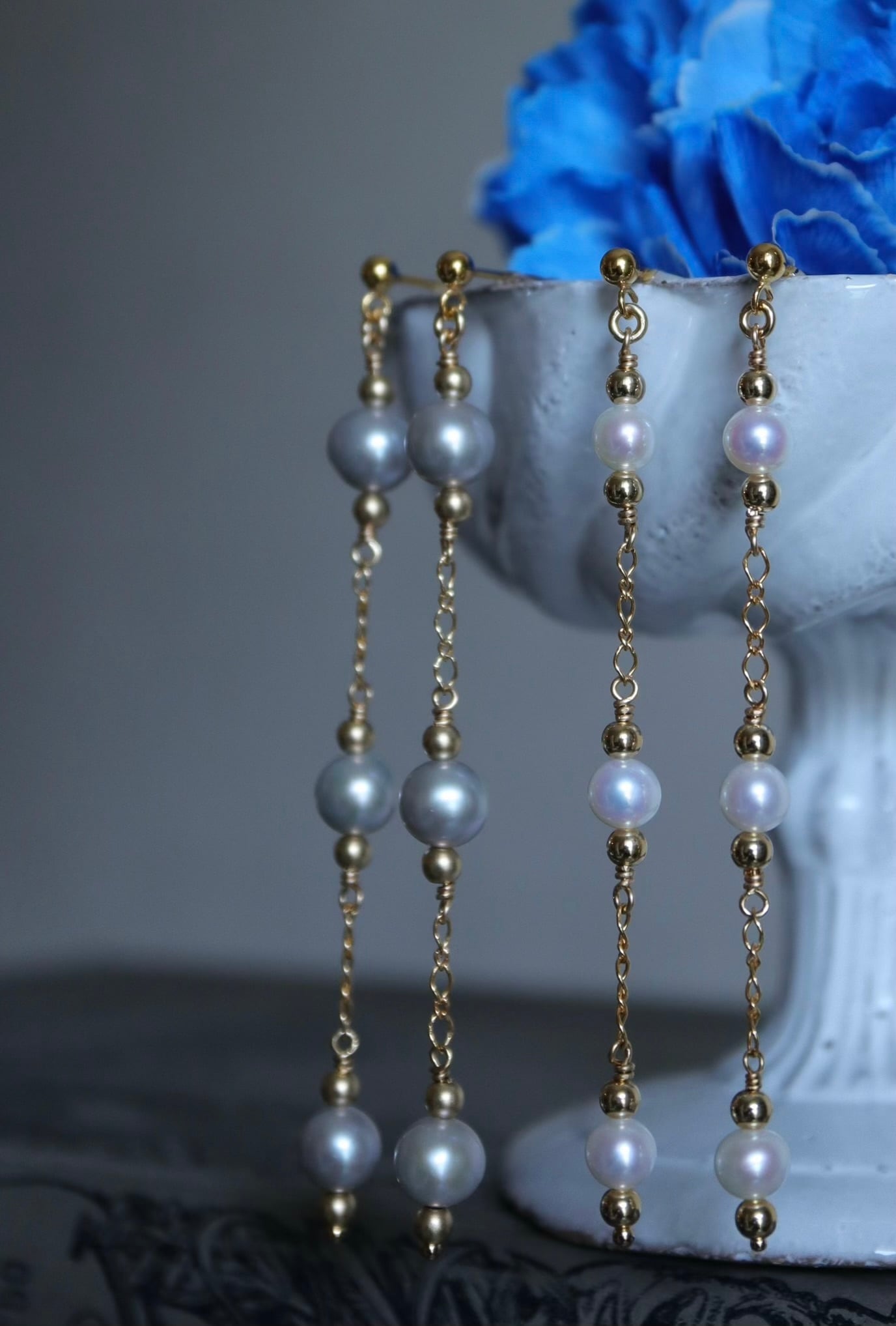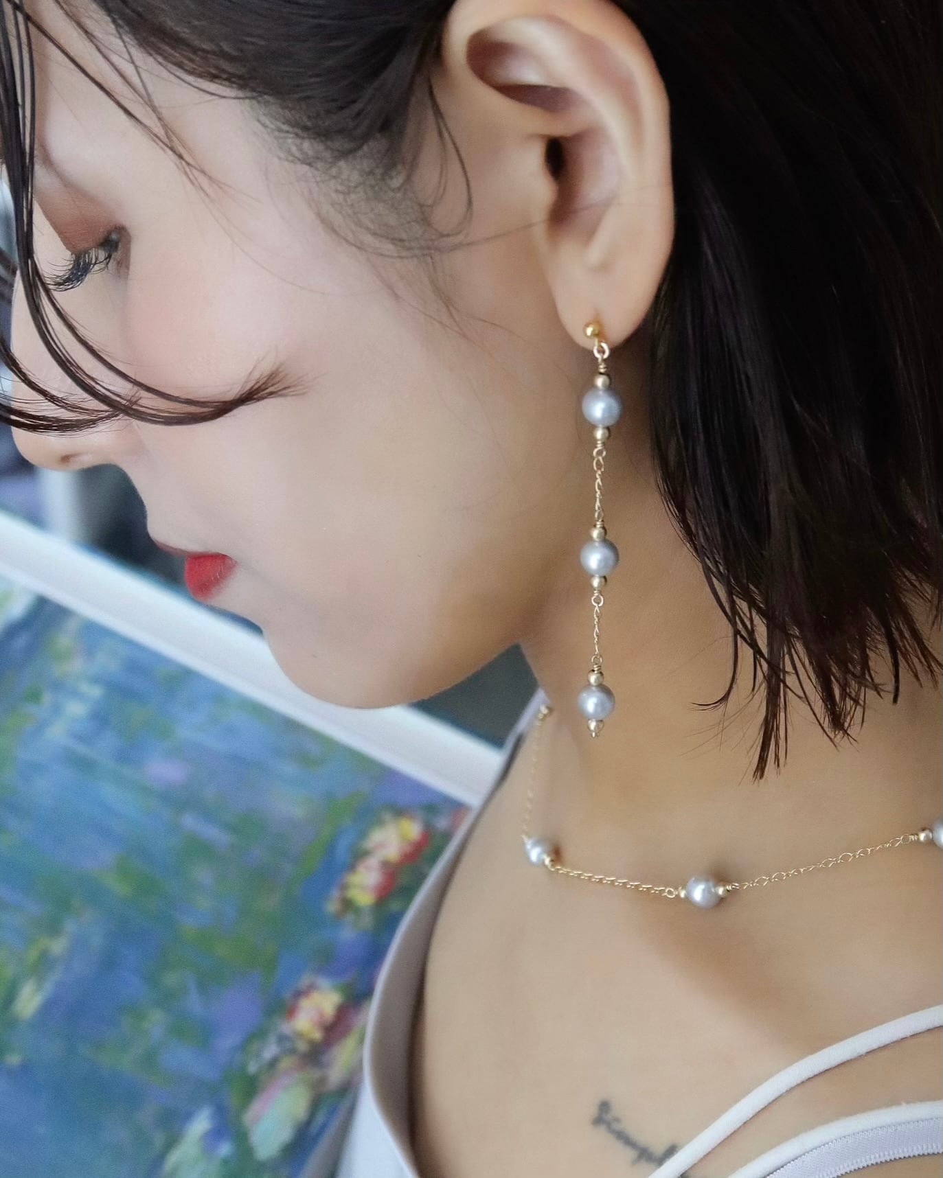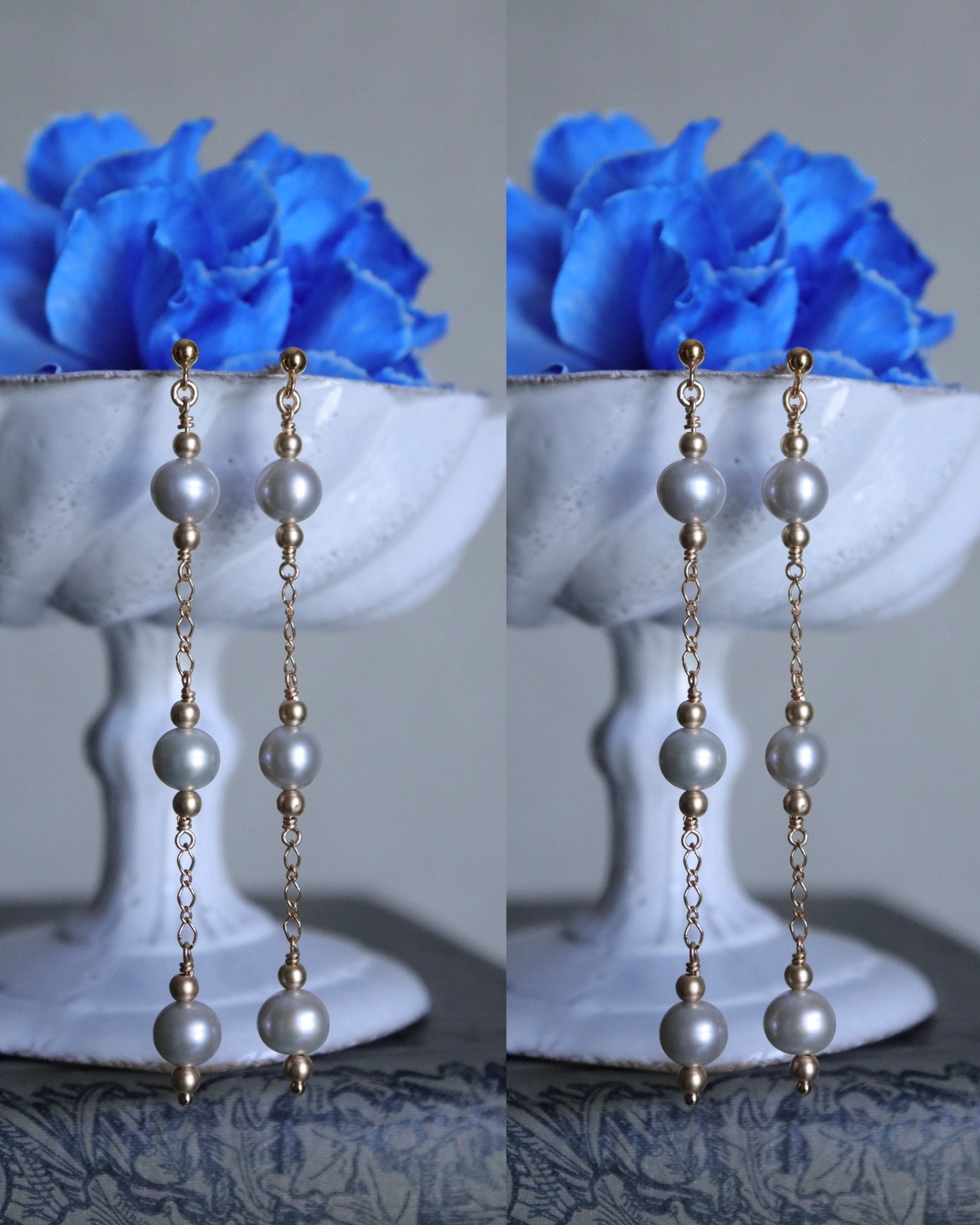 【✴︎返品可】3粒真珠の耳飾り Mist/Halo